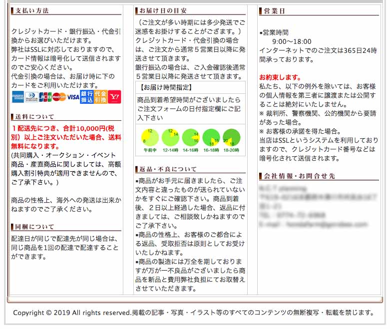まず、1件目の大田区田園調布にメールで商品の問い合わせを8/2にしました。現在までメールの返信はありません。思い切って昨日(8/11)、電話をしたところ「この電話は現在使われておりません。」の応答で、現在サイトは閉じられていました。