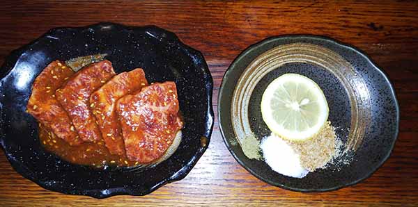 写真でもわかるように「隠れ家」的な店構えですよね。「ホルモン酒場 あかやしろ」は新鮮な焼肉を安い価格で提供する事で、京都でも知る人ぞ知るお店なんです。店内はとてもレトロな雰囲気で、テーブル席に案内されました。自分たちは「ホルモン」が食べたかったので、お店の方にアドバイスいただきながらオーダーしました。タンスジ・シマチュウ・ホソ・アカセンマイ・コリコリ・天肉・ウルテ・アギ等、東京では余り聞き慣れない部位が沢山あります。もちろん普通に知っているメニューもあります。早速オーダーしました。「石焼ビビンバ」「シマチュウ・ホソ・アカセンマイ」「レバー」「センマイ」「タンスジ」などを2~3人前注文しました。タレ味と塩味が選んで注文できます。ほとんどタレ味で頂きました。どの料理もタレがほどよく絡みご飯が進みます。これぞホルモンをリーズナブルな価格でいただき京都の夜は更けて行きました。(ごちそうさまでした。)